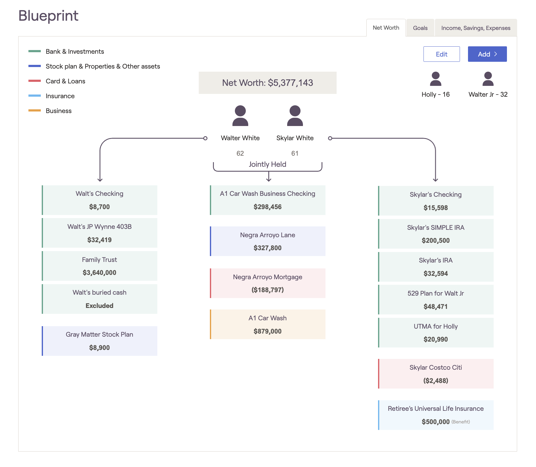 - Retirement timing: Walter at ~67; Skylar at ~58
