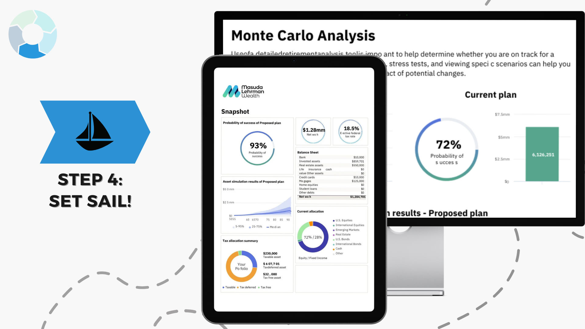 With the discovery work complete, this phase turns insight into strategy. Daniel now takes the raw data—their income sources, investments, pensions, and expenses—and transforms it into a clear picture of where they stand and what’s possible. This is where financial planning shifts from numbers to decisions. Over the next several weeks, Daniel reviews, organizes, and analyzes every piece of information, then hosts a series of 60–90 minute Zoom sessions to refine the plan together. These meetings are highly interactive, designed to test real-life scenarios and explore tradeoffs so they can make confident, informed choices. Together, they’ll answer the questions that matter most: